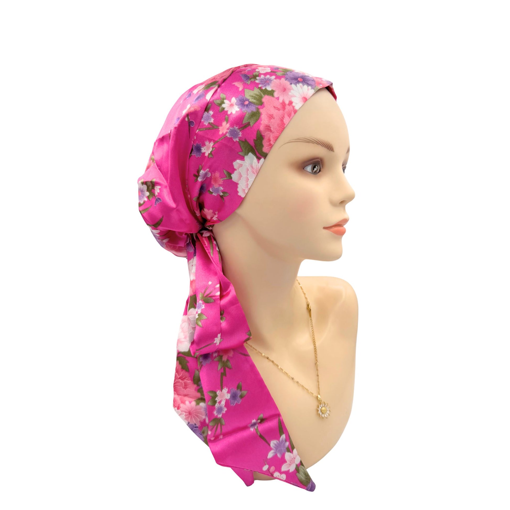 With its exquisite satin floral design and practical features, this scarf allows you to make a fashion statement while facing the challenges of hair loss. Whether you're attending a special event, meeting friends, or simply running errands, our scarf will not only provide comfort but also enhance your style and confidence.